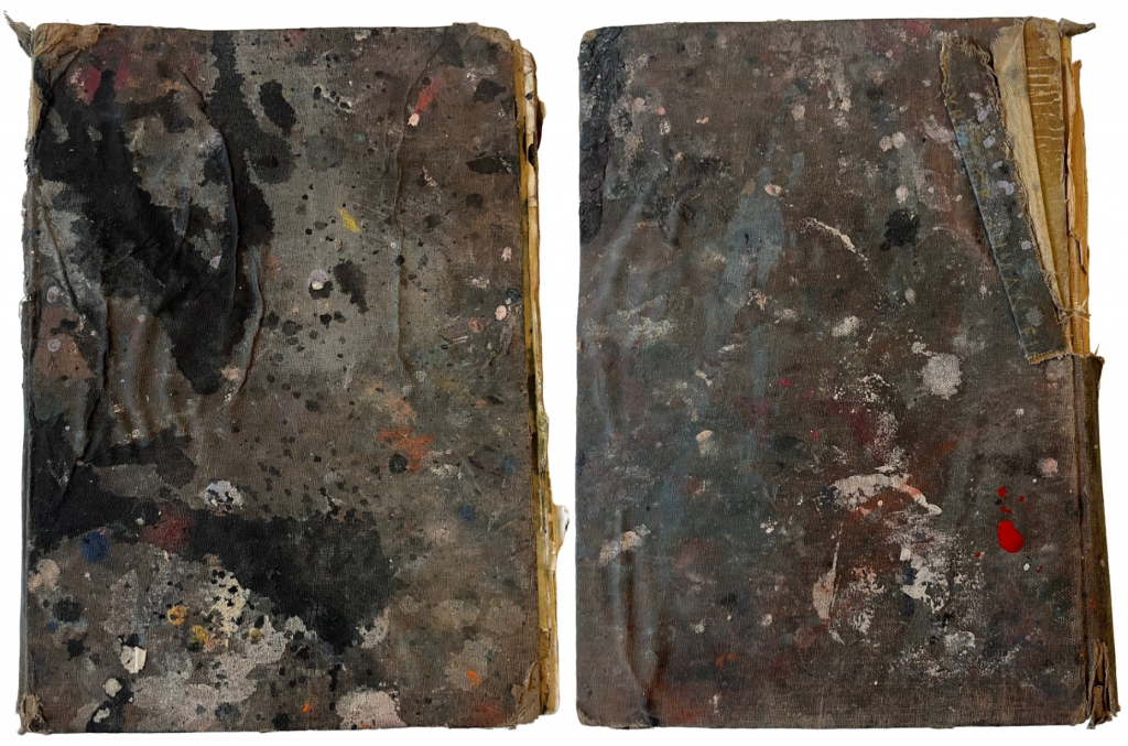 Four books from the Francis Bacon Studio Archive were recently treated for mould damage by paper conservator, Heidi Forsyth. The paper’s structural integrity was severely compromised, likely due to aqueous damage, leading to mould growth. The books have been stored in dry, stable conditions since they were acquired by the Hugh Lane Gallery in the 1990s. The environmental conditions under which cultural institutions store their objects are not conducive to mould growth, and the mould present was deemed inactive and likely non-viable, given the objects’ storage history and powdery, dry characteristics. Despite being inactive, the mould can still pose a health risk; therefore, the use of appropriate studio and personal protective equipment is required when treating mould and should be carried out by a professional.